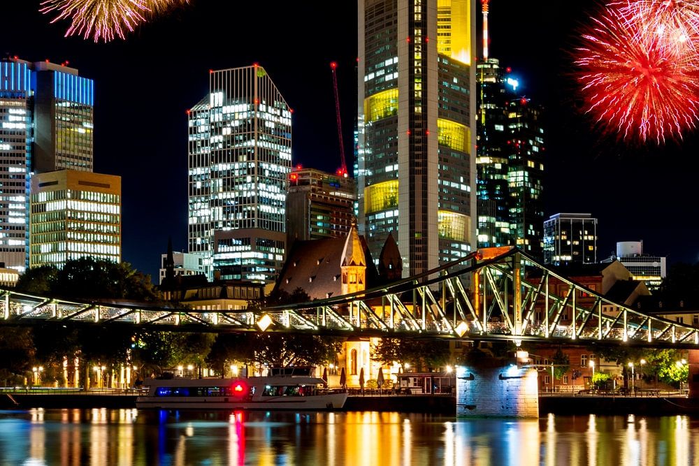 Fireworks over the skyline of Frankfurt at night by ManfredFotos