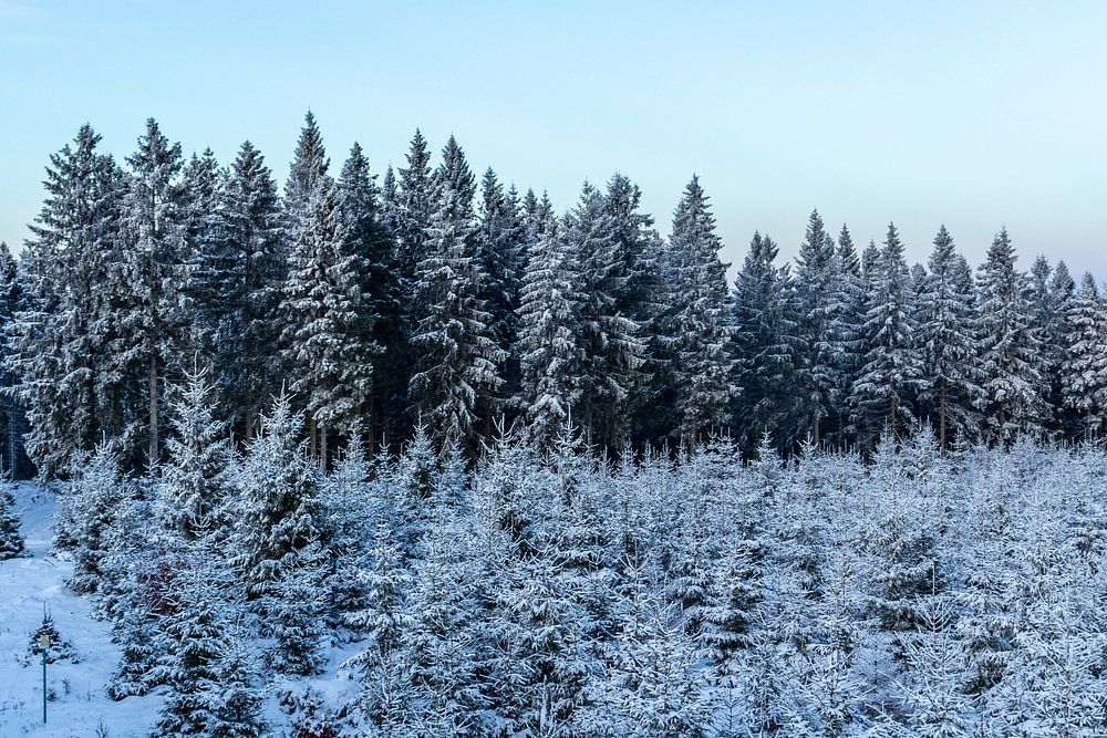 First winter hike on the Rennsteig at beautiful sunset - Germany