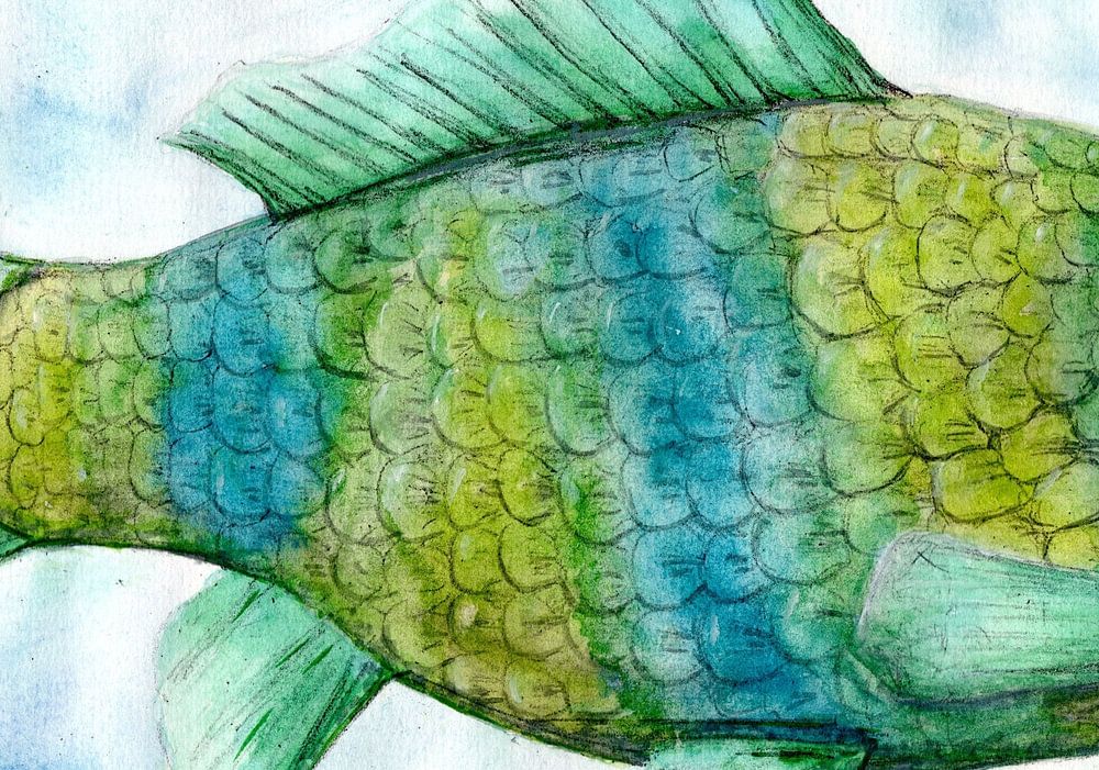 This watercolor shows a fish in green, blue and yellow color gradients. As a power animal, the fish stands for intuition, perception, calm, trust and flow of life. It supports to listen to the inner self and to let oneself drift trustingly.