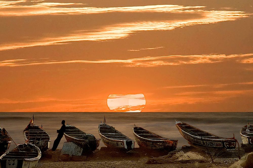 On the coast in Gunjur Gambia it is wonderful to see the boats and fishermen in the evening. This lonely fisherman was still staring at the sea after Dr. Laning was inside.