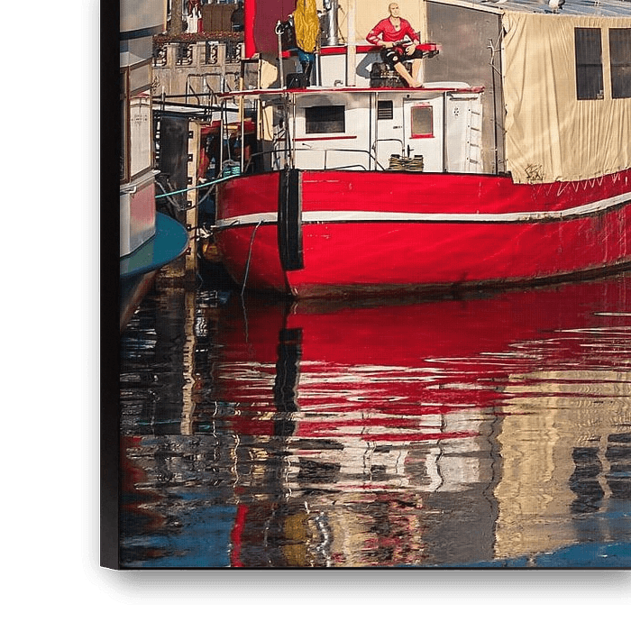 Buy the photo Fishing boats at the Alter Strom in Warnemünde in winter by Rico Ködder on canvas, ArtFrame, poster and wallpaper, printed on demand in high quality.