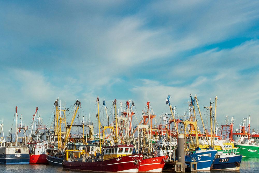 Fishing boats in the harbour of Lauwersoog. Many shrimp fishermen on the Wadden Sea dock here, but fishing boats from the sea also unload their catch which is then usually transported by truck to some fish auctions.