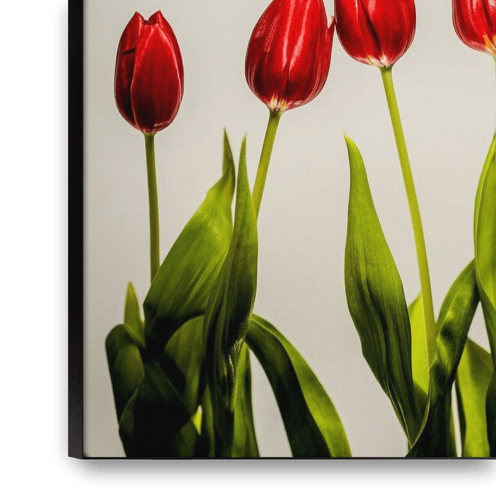 Buy this flower art Five Red Tulips on Neutral Background – Minimalist Floral Composition by Nikita Sukhinin on canvas, ArtFrame, poster and wallpaper, printed on demand in high quality.