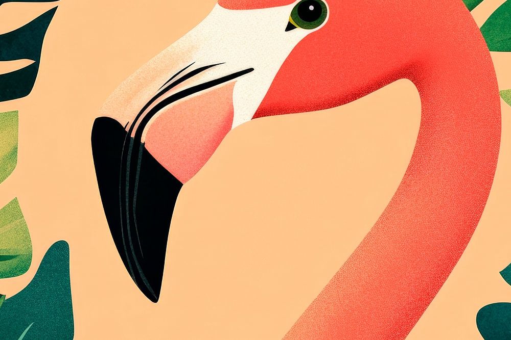 Vibrant shades of pink and lively tropical leaves frame a charming flamingo, which shines in a relaxed pose. This tropical composition brings a feeling of holiday and joie de vivre to any room. This work of art is ideal in a kitchen or living room, where it will bring fresh energy and a touch of the exotic.