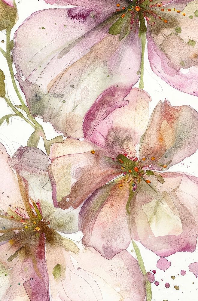 This artwork, called "Floral Fantasy", enchants with a dreamy watercolour flower in soft pastel colours of soft pink and green. The flower seems to float on the paper, its delicate petals and petals inviting like a dream come true. The pastel colours bring a sense of lightness and tenderness, creating an atmosphere of enchantment. Each brushstroke brings the natural grace and beauty of the flower to life in a subtle and dreamy way. This work of art invites a moment of rest and wonder, letting you enjoy the imaginative splendour of nature, captured in a soft and enchanting composition.