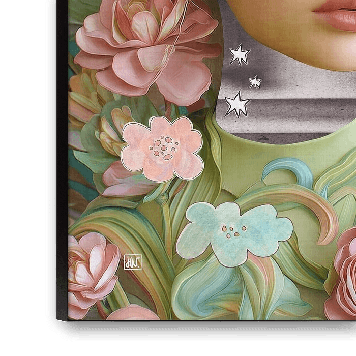 This AI portrait series consists of modern artworks in which female figures, soft botanical forms and my handmade elements come together in a new, contemporary image. I combine my own watercolour flowers, sketches and collage forms with AI - not as a replacement, but as a creative extension. A fresh way to further open up my style and…