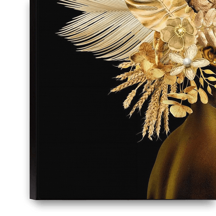 Floral Portrait Art - Black & Gold