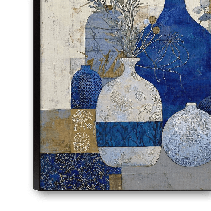 Flower Vases | Elegant Vases with Blooms - This is a flower painting with a combination of elegant vases and colourful flowers, in which mainly shades of blue and green give it a fresh look.