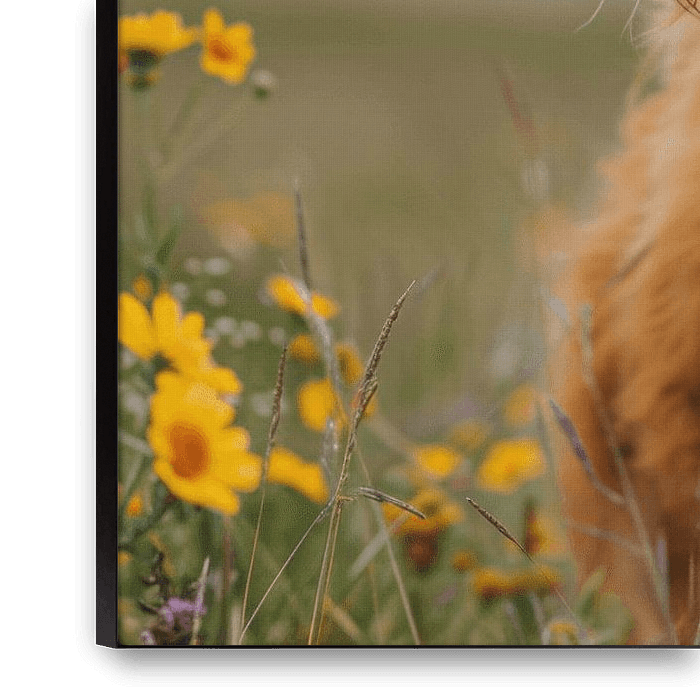 Buy this highland cow art Flower crown highland cattle - Idyllic nature photography for the home by Poster Art Shop on canvas, ArtFrame, poster and wallpaper, printed on demand in high quality.