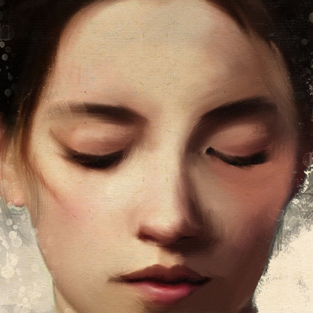 Flower girl II | Digital oil painting with a bohemian twist This flower girl was created with digital oil paint brushes and placed on a paper background. So when you zoom in on it, the texture of the paper and linen and the brushstrokes come out. Near the roses, a photo light shines through, with the girl wearing red-pink flowers in her neck and hair. By placing the flowers on both the left and right, the girl is balanced. The composition of the flowers is enhanced in the diagonal grey background. Because the colour of the background has been omitted and the face matches both the background and the flowers, the flowers stand out even more and the painting looks like a beautiful whole.