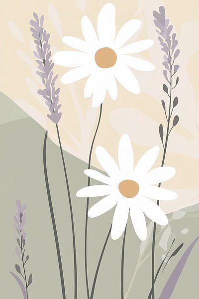 Elegant flowers and calming lavender stems dance harmoniously in the room in delicate pastel colours. The fresh, clear shapes bring life and cheerfulness, ideal for a kitchen or a bright living room. Their natural radiance creates an inviting atmosphere and is reminiscent of a sunny spring day. Perfect for spreading positive energy and…