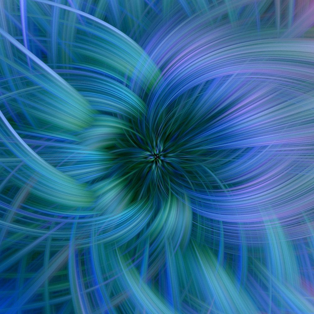 This modern abstract art print showcases a mesmerizing arrangement of twisted light beams, arranged in a flower-like shape that resembles a fireworks burst. The artwork features modern shapes and lines creating a colorful and contemplative piece.