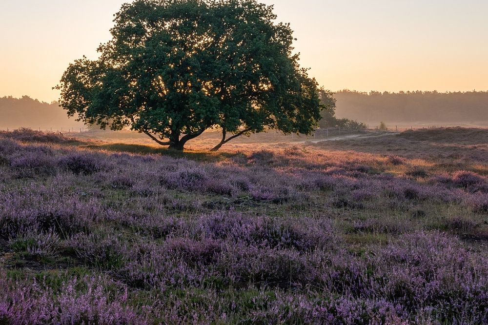 The heather near the Gooi is in bloom, which makes for nice images during sunrise. This is the Tafelbergheide near Blaricum.
