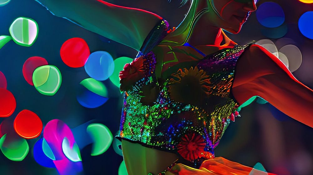 Digital painterly image in bright colours of fictional people with flowers in a fantasy world