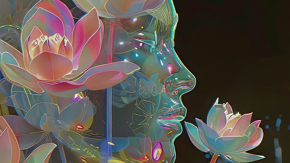 Buy this portrait Flowerpower Fantasy by Egon Zitter on canvas, ArtFrame, poster and wallpaper, printed on demand in high quality.