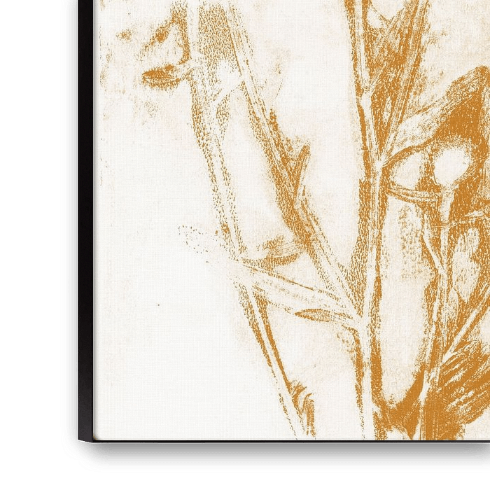 Buy this flower art Flowers in ocher yellow on white. Modern botanical minimalist art by Dina Dankers on canvas, ArtFrame, poster and wallpaper, printed on demand in high quality.