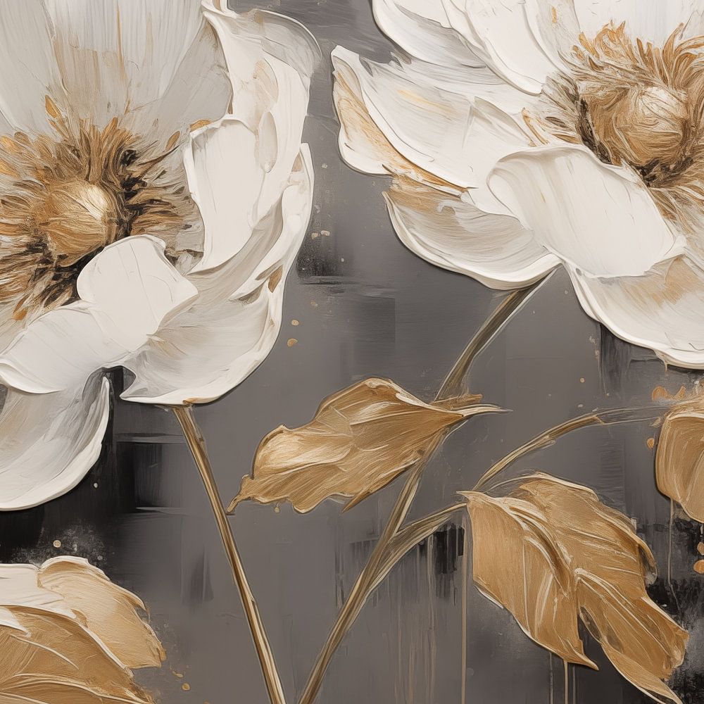 Buy this digital art artwork Flowers white and gold by Bert Nijholt as a reproduction on canvas, ArtFrame, poster and wallpaper, printed on demand in high quality.