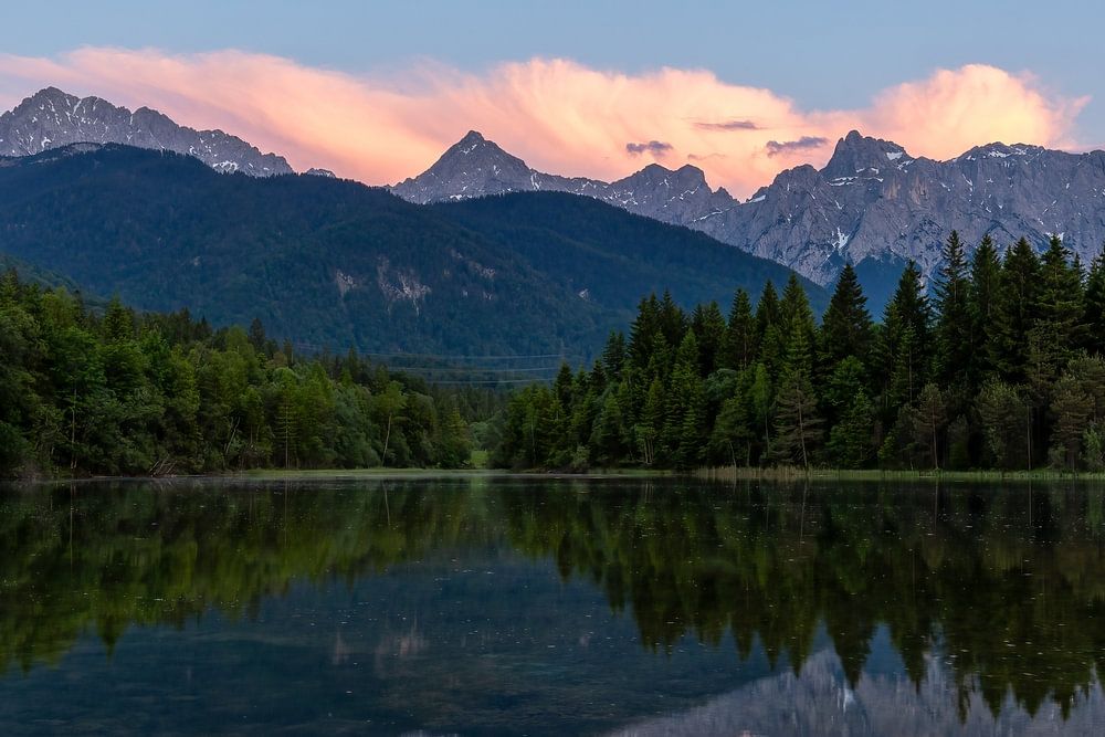 Buy this landscape artwork Fluffy pink clouds at the reservoir by Teresa Bauer on canvas, ArtFrame, poster and wallpaper, printed on demand in high quality.