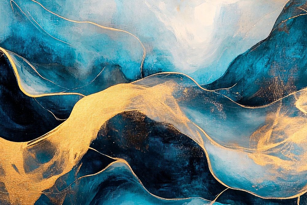 This artwork offers a harmonious combination of flowing lines and rich colours that transforms any space into a modern and elegant ensemble. The subtle transitions between deep blues and warm gold accents create a sense of movement and sophistication. Perfect for abstract art lovers looking for a unique statement piece. This painting fits perfectly in living rooms, offices or other spaces where a sense of calm and dynamism is desired. The detailed texture and use of high-quality colours make it a wonderful addition to any interior.