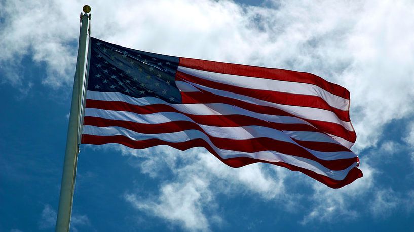 Buy the photo Flying American flag by Bart van Wijk Grobben on canvas, ArtFrame, poster and wallpaper, printed on demand in high quality.