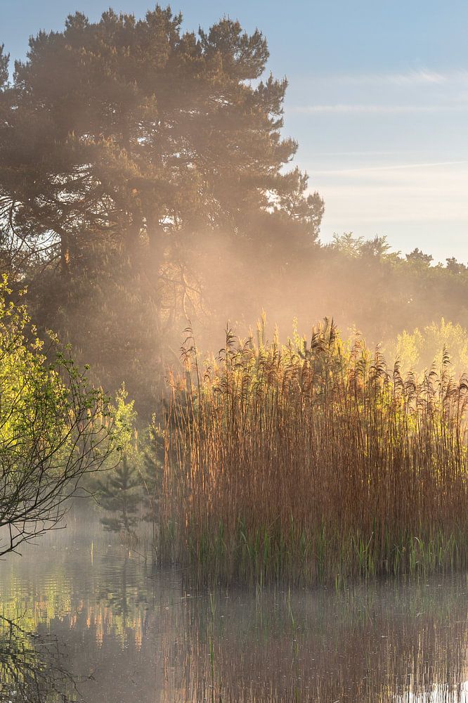 Een prachtige landschapsfoto tijdens een mistige zonsopkomst bij een ven op de heide in de lente. De fraaie reflecties in het water en de prachtige warme en frisse lentekleuren maken deze foto tot een bijzonder prachtig kleurrijk en sereen werk. De mooie wolken zorgen voor een fraaie dieptewerking. En het goudenlicht van de opkomende zon zorgt voor een mooie zonnegloed en geeft het werk een warme sfeer. Het prachtige zachte licht van de opkomende zon schijnt prachtig over het riet en het landschap. Het is een levendig kleurrijk modern kunstwerk maar straalt ook rust uit. Heb je een lege plek aan de muur in je huis of kantoor? Dan is dit een prachtig kunstwerk voor je lege plek aan de muur te vullen. Een prachtige wanddecoratie waar je elke dag weer opnieuw van kunt genieten. Deze foto past bij vele woonstijlen en interieurs en vooral bij mensen die van de natuur houden. Dit werk "Mistige zonsopkomst bij een ven op de heide" word aangeboden door John van de Gazelle Fotografie op Werk aan de Muur. De Brunssummerheide is een prachtig natuurgebied gelegen te Brunssum in de provincie Limburg. Het is een natuurgebied van c.a. 600 hectare en is in beheer van Natuurmonumenten. De Brunssummerheide grenst aan de Schrieversheide een van de meer heuvelachtige heidegebieden in Nederland. De Schrieversheide is het grootste heidegebied in Zuid-Limburg. Je kunt hier volop genieten van hoogteverschillen en fraaie vergezichten. In dit prachtige heidegebied ontspringt ook de Rode Beek. Deze vormt dwars door de heide een venig en moerassig beekdal met een voor Nederland bijzondere vegetatie en begroeiing. Als ik landschappen ga fotograferen zal ik er meestal voor kiezen om tijdens de zonsopkomst en ondergang te fotograferen. Tijdens deze tijd ook wel de goudenuurtjes genoemd is het licht op zijn mooist. Het licht is dan mooi zacht en warm van kleur en zorgt voor mooie lange schaduwen. Dit zachte warme licht zorgt voor fraaie kleuren en een mooie zachte sfeer in de foto. Dit werk "Mistige zonsopkomst bij een ven op de heide" word aangeboden door John van de Gazelle Fotografie op Werk aan de Muur. Een prachtige wanddecoratie voor je lege plek aan de muur te vullen, waar je elke dag weer opnieuw van kunt genieten. Meer, Ven, Brunssummerheide, Heide, Lente, Lucht, Wolken, Schilderij, Foto, Fotografie, Voorjaar, Water, Reflectie, Spiegelbeeld, Kunst, Kunstwerk, Moderne kunst, Ven, John