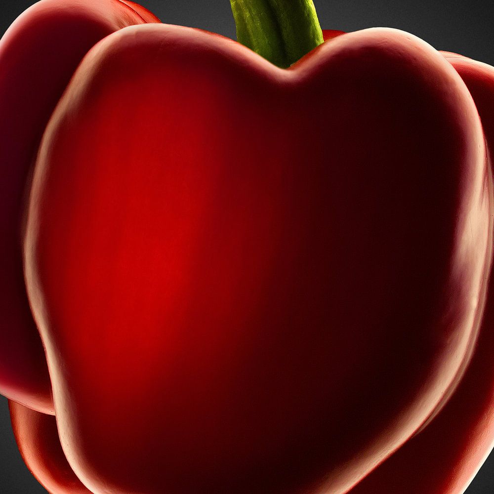 Buy this still life Food-Red bell pepper on black background by Everards Photography on canvas, ArtFrame, poster and wallpaper, printed on demand in high quality