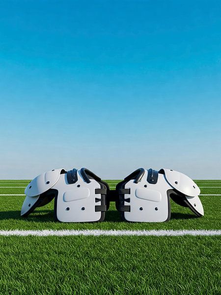 This clean sports-themed design highlights a pair of football shoulder pads placed neatly on a bright green field, capturing the strength, strategy, and preparation that define the game. The sharp lighting and realistic details make it an appealing choice for fans, athletes, and anyone who appreciates the competitive spirit of football.…