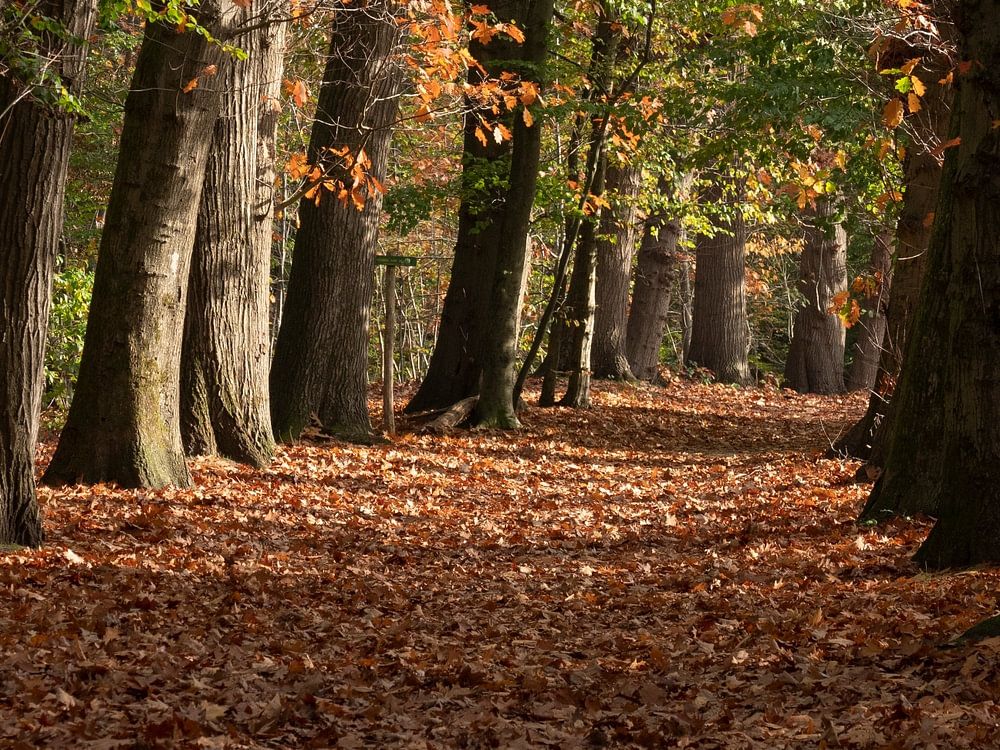 Forest avenue in autumn with golden leaves by Robin Jongerden