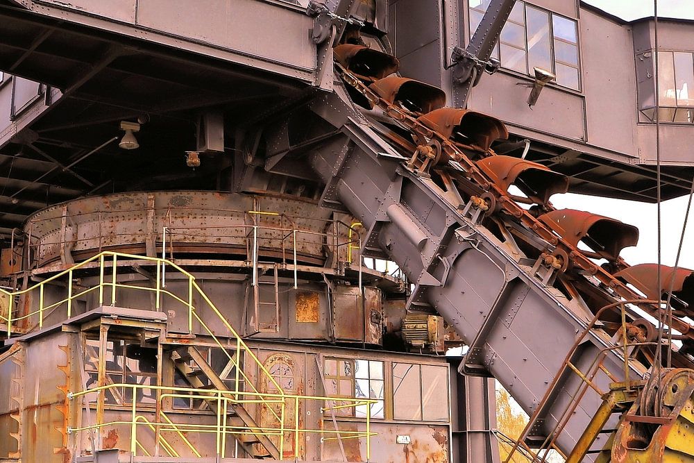 Former coal excavator in the former Golpa-Nord open-cast mine near Gräfenhainichen. The buildings and no longer needed lignite excavators of the open pit are now a museum and event venue and can be visited. The former open pit mine is now known as a venue for concerts under the name Ferropolis.