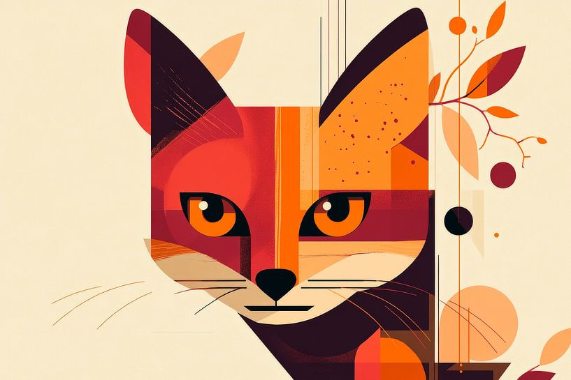With bright orange tones and a fascinating look, this stylised fox attracts everyone's attention. The harmonious combination of geometric shapes and soft lines radiates modern elegance. Ideal for the living room, it sets lively accents and creates a cosy, creative atmosphere.