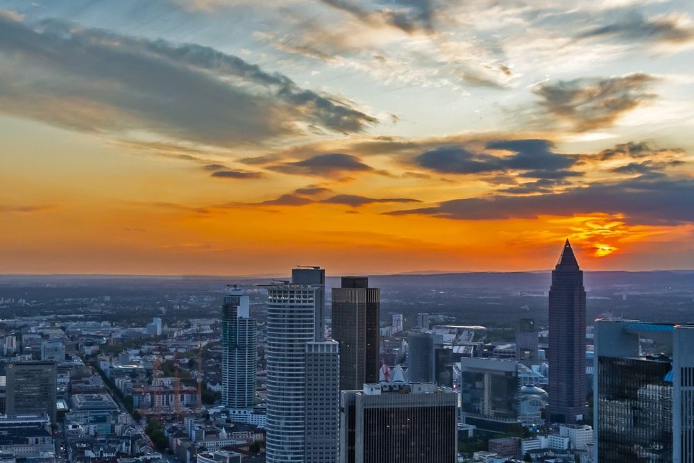 Frankfurt skyscrapers in the sunset. View from the Main Tower