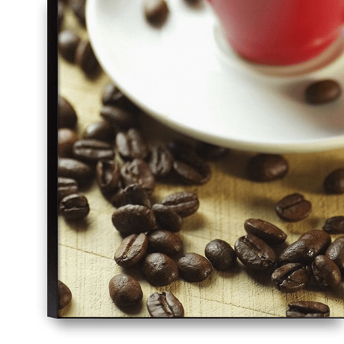 Fine contrast, red cup to dark freshly brewed espresso