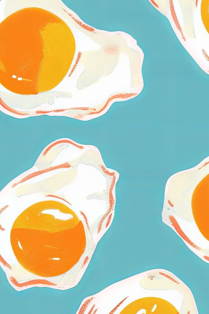 This vibrant pattern of fried eggs on a light blue background adds fun and colour to any kitchen. Ideal for cooking enthusiasts or as a humorous element in a modern home. Perfect for kitchen posters or as a cheerful wall decoration.