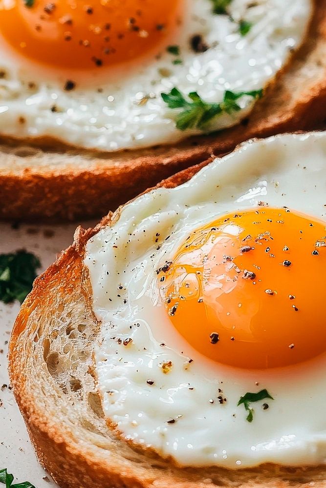 The aroma of freshly fried eggs and crispy bread wafts through the room. The bright yellow egg yolks and the delicate green of the herbs create warm accents on the plate. This appetising composition creates an inviting atmosphere in the kitchen that awakens the desire for enjoyable morning moments. A real eye-catcher for all breakfast lovers!