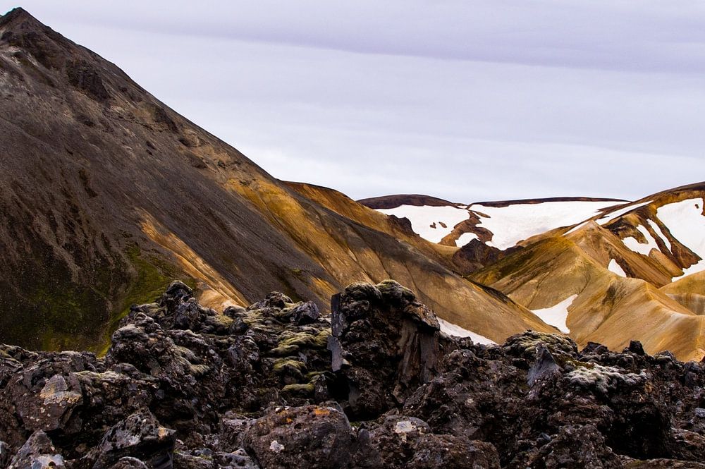Landmannalaugar has it all. This place in the Icelandic highlands is known for its special nature. The rhyolite mountains can be seen there in beautiful colors and you can take beautiful walks around ancient lava fields, full of black glittering rock.