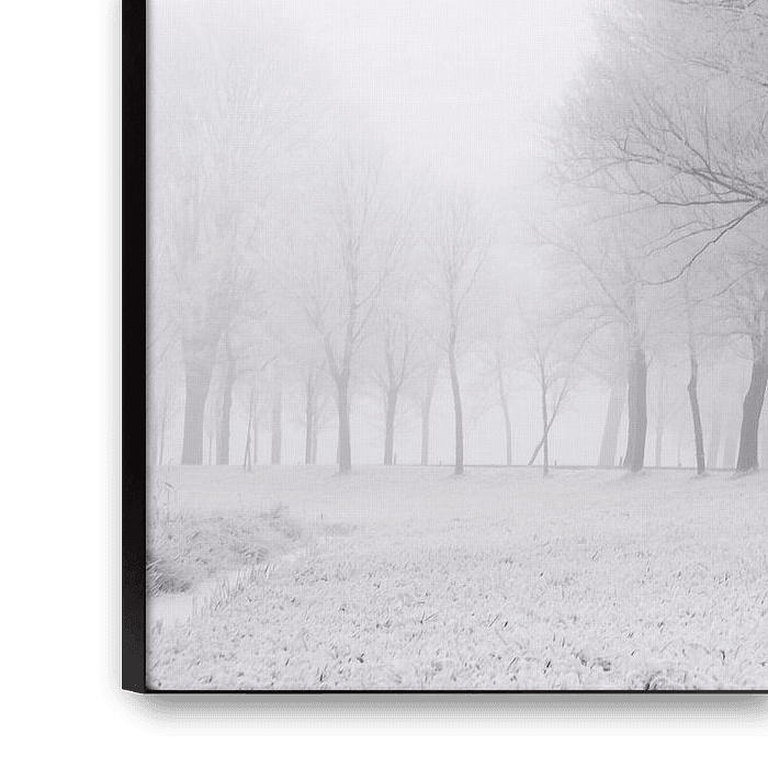 Frosty winter landscape during an early misty morning in the IJsseldelta region in Overijssel, The Netherlands.