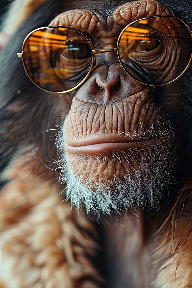 Humorous picture of a monkey in disco clothes and glasses imitating the 60s style for a birthday.