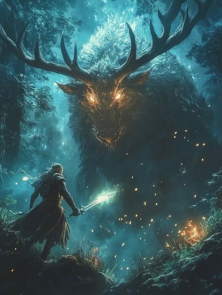 Buy this digital art artwork Fury Unleashed: Anime Warrior vs. Terrifying Monster by mhocidark mo as a reproduction on canvas, ArtFrame, poster and wallpaper, printed on demand in high quality.