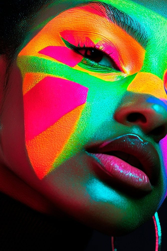 A fascinating interplay of bright colours and strong expression unfolds here, where neon censors transform the face into a work of art. The combination of intense tones and striking features brings energy and creativity to any room. Ideal for a modern living room or an inspiring studio to create a lively atmosphere.
