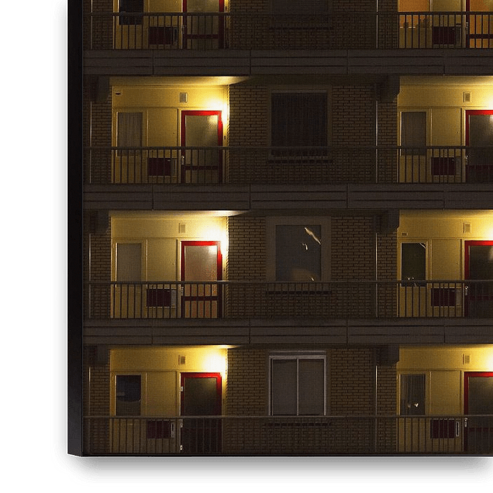 A flat in evening light. All the flats look the same, but are they? What happens behind the curtains? Who lives there? It seems so anonymous. Do they know each other? Are they neighbours or strangers? Together and yet alone? Lots of questions and lots to fantasise about what goes on inside....