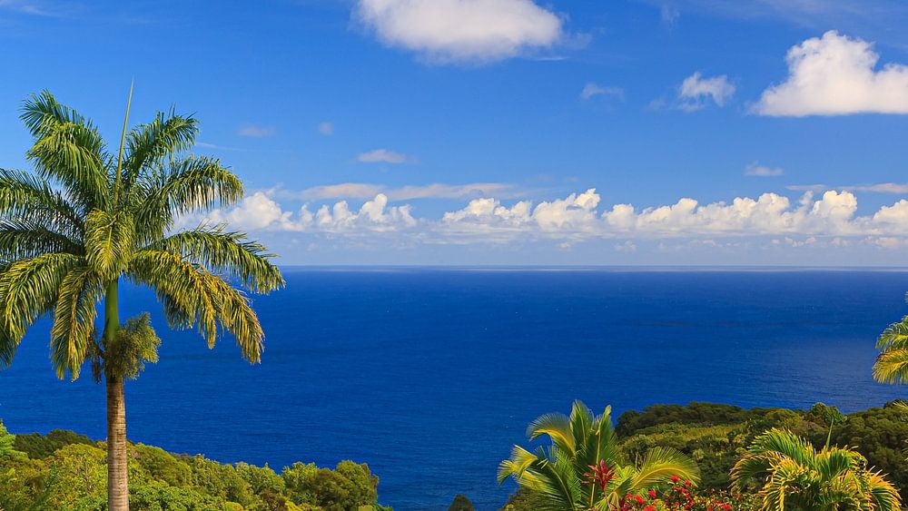 A horizontal 16:9 photo overlooking the vast ocean from the Garden of Eden, on Maui, Hawaii.