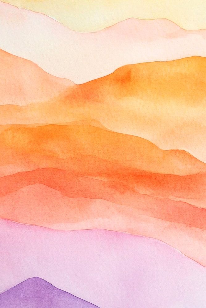 Gentle colour gradients in warm shades of orange and purple play around the contours of gentle hills and create a calming atmosphere. This abstract composition conveys a feeling of space and closeness to nature, perfect for the bedroom, where it radiates harmony and relaxation. The shimmering tones invite you to dream and relax.