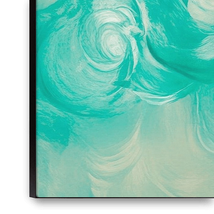 Soft swathes of colour in delicate turquoise, cream and peach harmonise and lend a calming atmosphere to any room. The soft, flowing shapes invite a feeling of serenity and fit perfectly in a modern living room or stylish bedroom, where they can promote relaxation and inspiration.