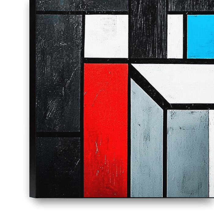 A modern abstract artwork that fits perfectly into contemporary interiors. The composition combines striking geometric shapes with contrasting primary colours and subtle textures. This unique style adds a vibrant and dynamic atmosphere to any space, be it a living room, dining room or office. This artwork immediately grabs attention and…