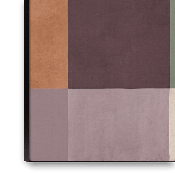 This unique design plays with geometric shapes and earth tones, creating a harmonious and soothing effect. Rectangles, squares and diagonal lines alternate in a balanced pattern that is ideal for modern interiors. The colour combination of brown, green, beige, purple and orange creates a warm look that is both subtle and inviting. This…