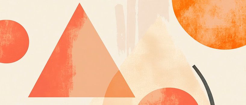Soft earthy colours and harmonious shapes come together in a play of geometric elements. The combination of triangular and circular motifs exudes a modern aesthetic and creates an inviting atmosphere. Perfect for the living room, it brings a touch of creativity and warmth to the room.