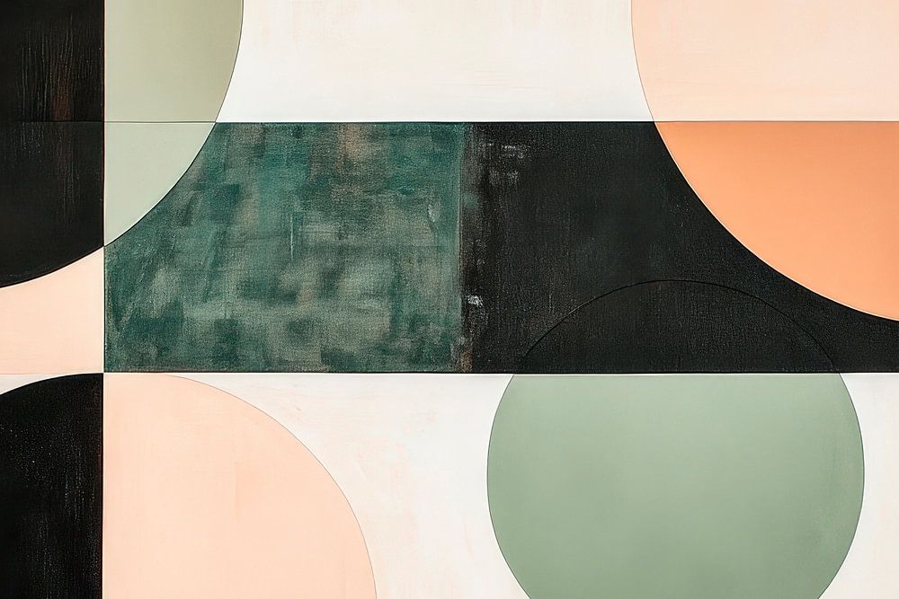 Soft, harmonious colours in gentle earth tones and elegantly curved shapes come together in this fascinating work of art. The playful arrangement of geometric elements creates a calm but stimulating atmosphere, perfect for a modern living room that wants to radiate style and cosiness. A real eye-catcher for creative souls!
