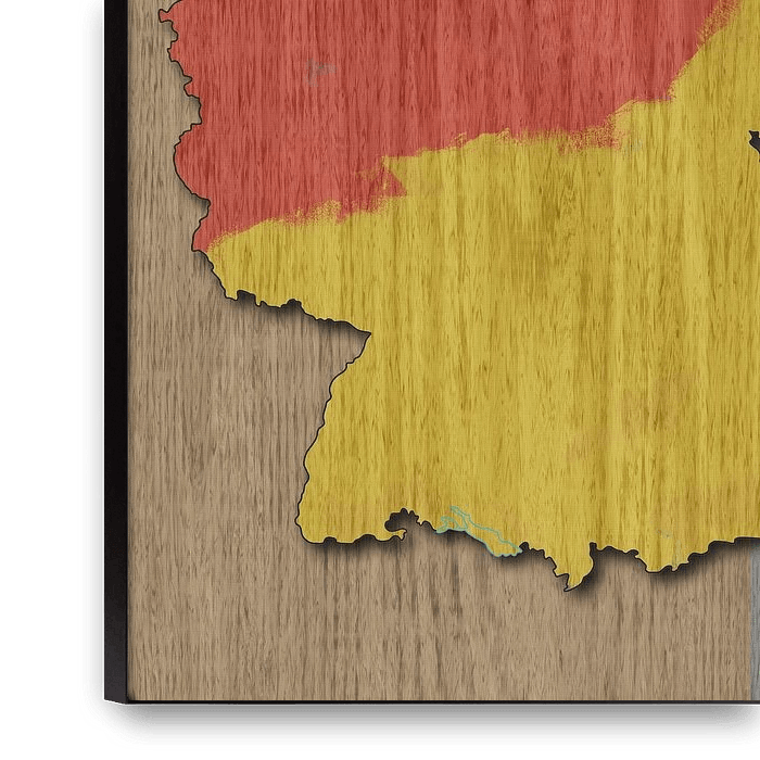 In Germany in Wood: An Artistic Wood Map, the classic contours of Germany are reinterpreted through warm wood textures and vibrant colours. This artwork combines craftsmanship with a modern aesthetic, with the German flag subtly woven into a wood texture. The result is an intriguing balance between abstraction and…