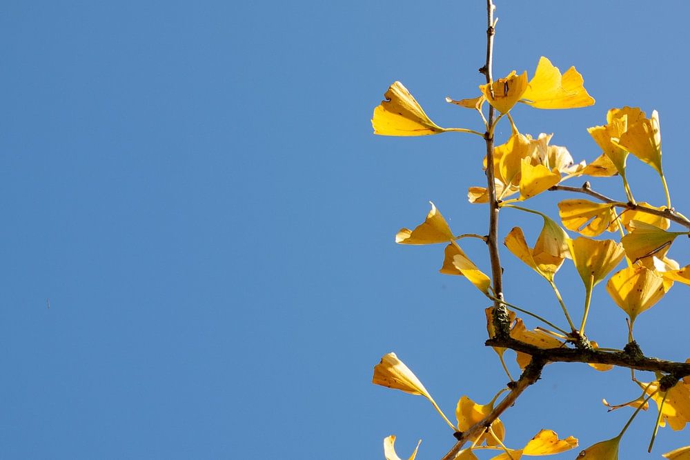 This beautiful Ginkgo biloba turns a beautiful yellow in autumn. The clear blue sky makes the leaves look almost like gold.