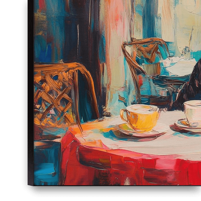 Buy this abstract artwork Giraffe in a café with style by Poster Art Shop on canvas, ArtFrame, poster and wallpaper, printed on demand in high quality.